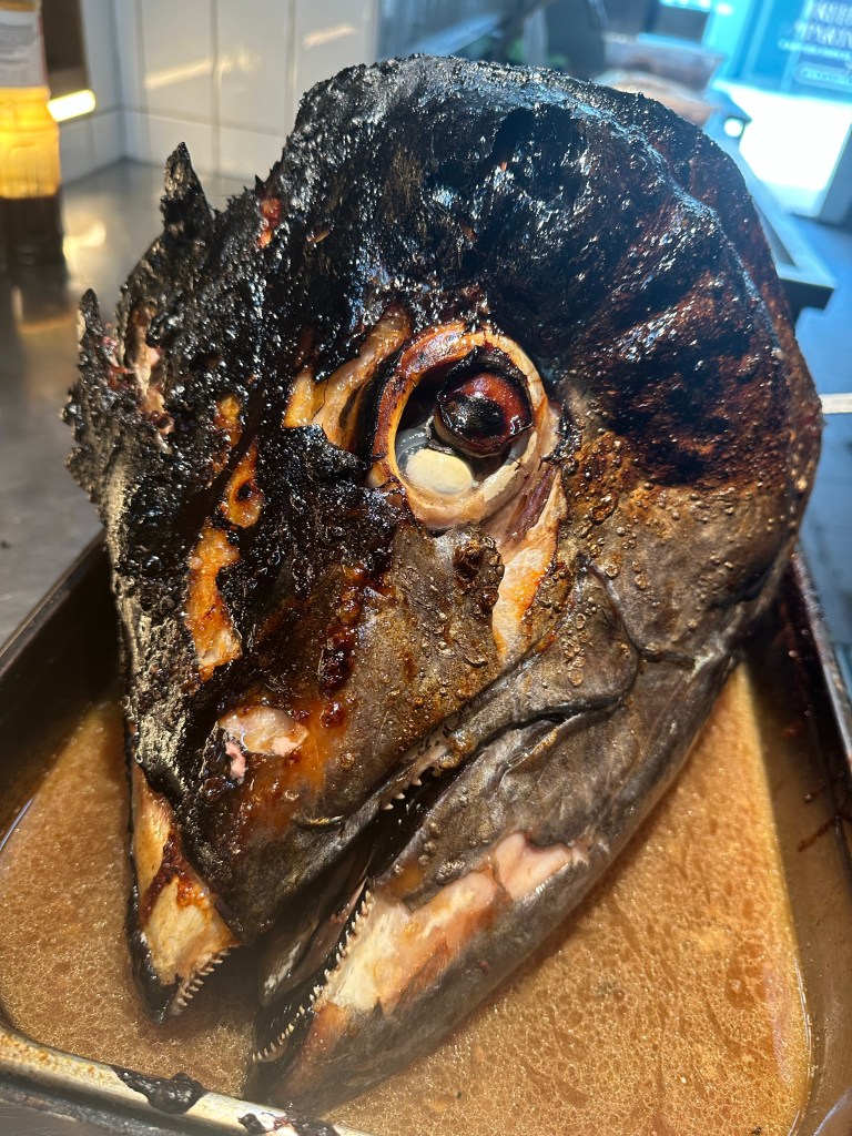Roasted Whole Tuna Head with Teriyaki and Lemon juice.