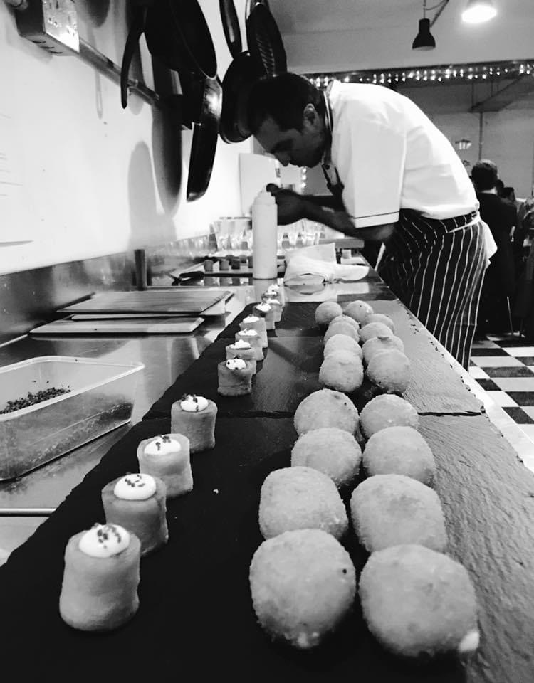 LCP era el magnífico recinto donde realizábamos muchas de las actividades entonces de la London Paella School y esta vez juntamos fuerzas con Marlon de Marlon’s Kitchen que a su vez realizaba un supperclub de cenas en su casa y montaba un puesto de comida colombiana en un mercadillo donde servía la mejor ‘Lechona’. Junto a él, se unió Edwin, que hoy posee en Madrid el restaurante Quimbaya, otorgado con una estrella Michelín, siendo el primer restaurante de comida colombiana con ese galardón.