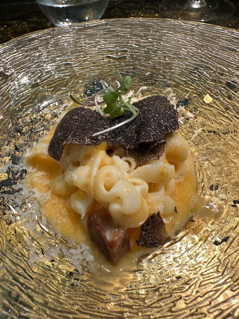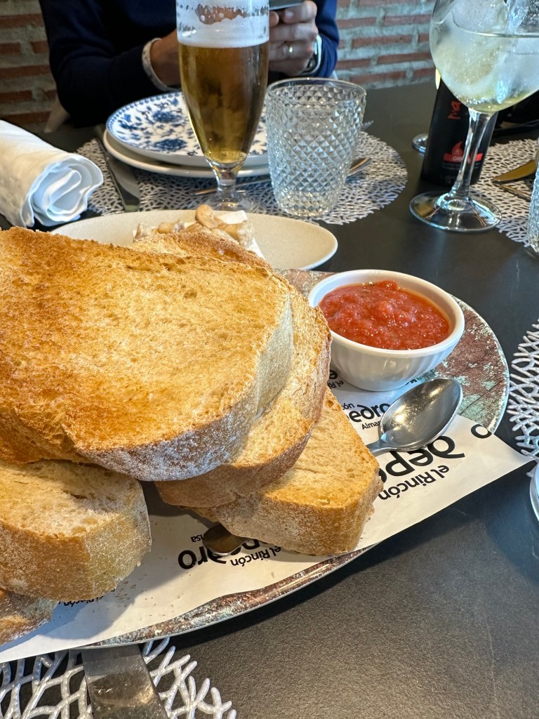 Enseguida marchamos para Toledo, ciudad imperial, donde una guía nos enseñó parte del casco histórico (todo no se puede ver en una tarde) y fuimos a cenar al restaurante de Victor Sánchez-Beato. Una pequeña cocina envuelta por una barra, al más puro estilo japonés, donde Victor y un par de ayudantes desarrollan un menú degustación para 14-16 comensales y a la misma hora. Conocía el método de haber estado en varios restaurantes así en Singapur pero fue aquí donde me di cuenta de la genialidad del sistema: poca gente trabajando se apaña en el espacio, los chefs sirven y desbarasan, todos los comensales empiezan y terminan al mismo tiempo, juegas con turnos… éxito y caja asegurados si sabes mantener tus costes.