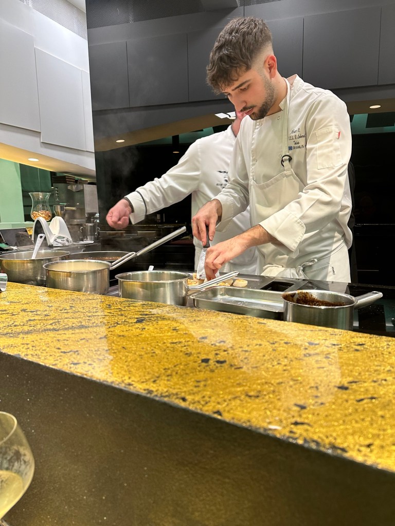 Comenzamos en el stand de Raíz Culinaria, en Madrid Fusion, un sello que representa restaurantes de CLM unidos que defienden la gastronomía manchega, el producto, el terreno y las técnicas de toda la vida. Son un montón de restaurantes asi que, si planeas un viaje algún día y necesitas pistas, échale un ojo. Allí probamos algunos vinos de la región y platos de algunos de los restaurantes participantes.