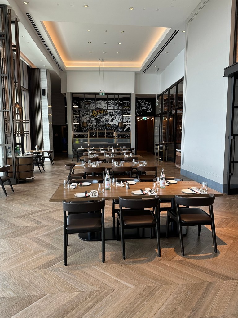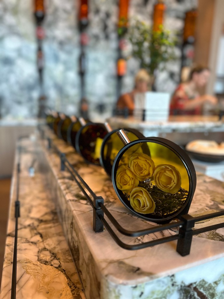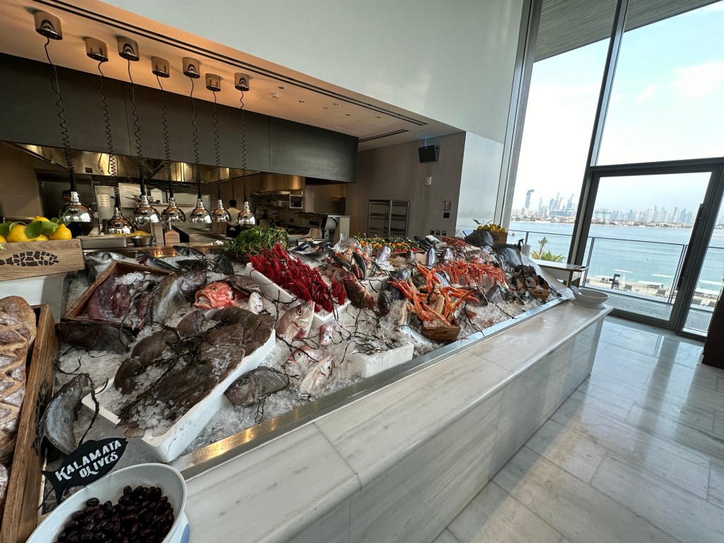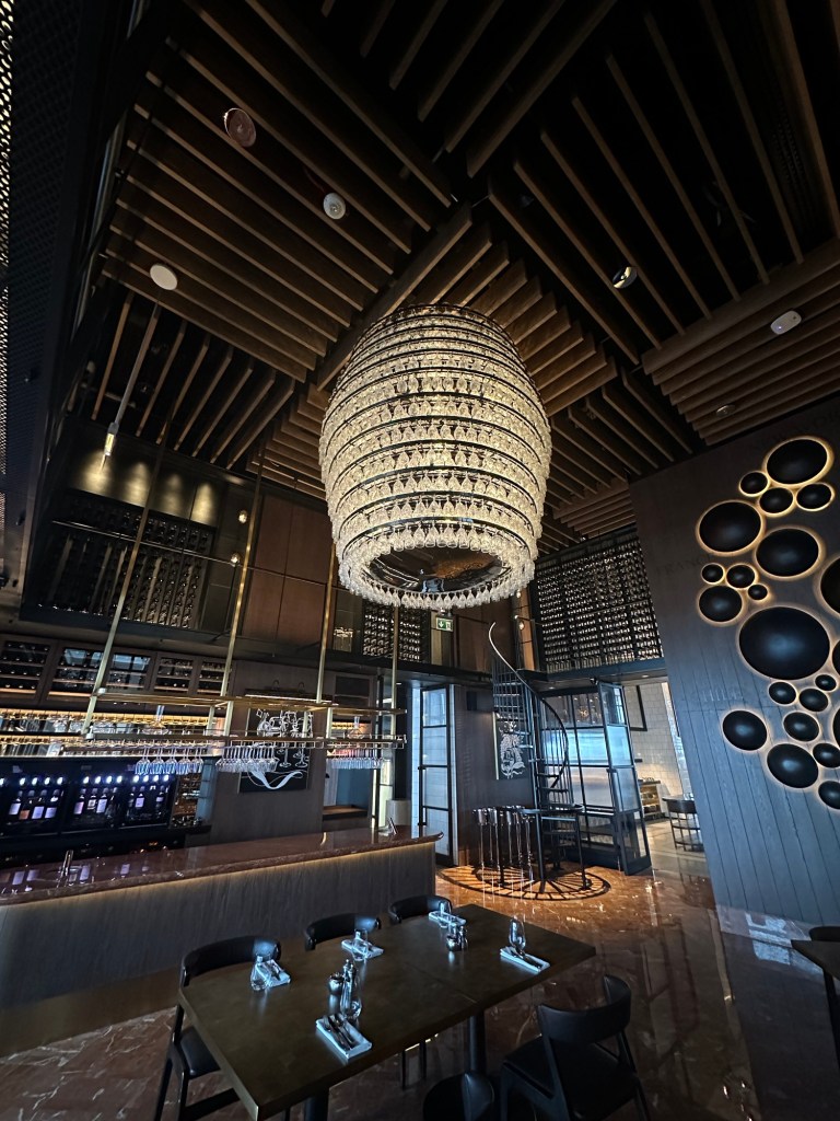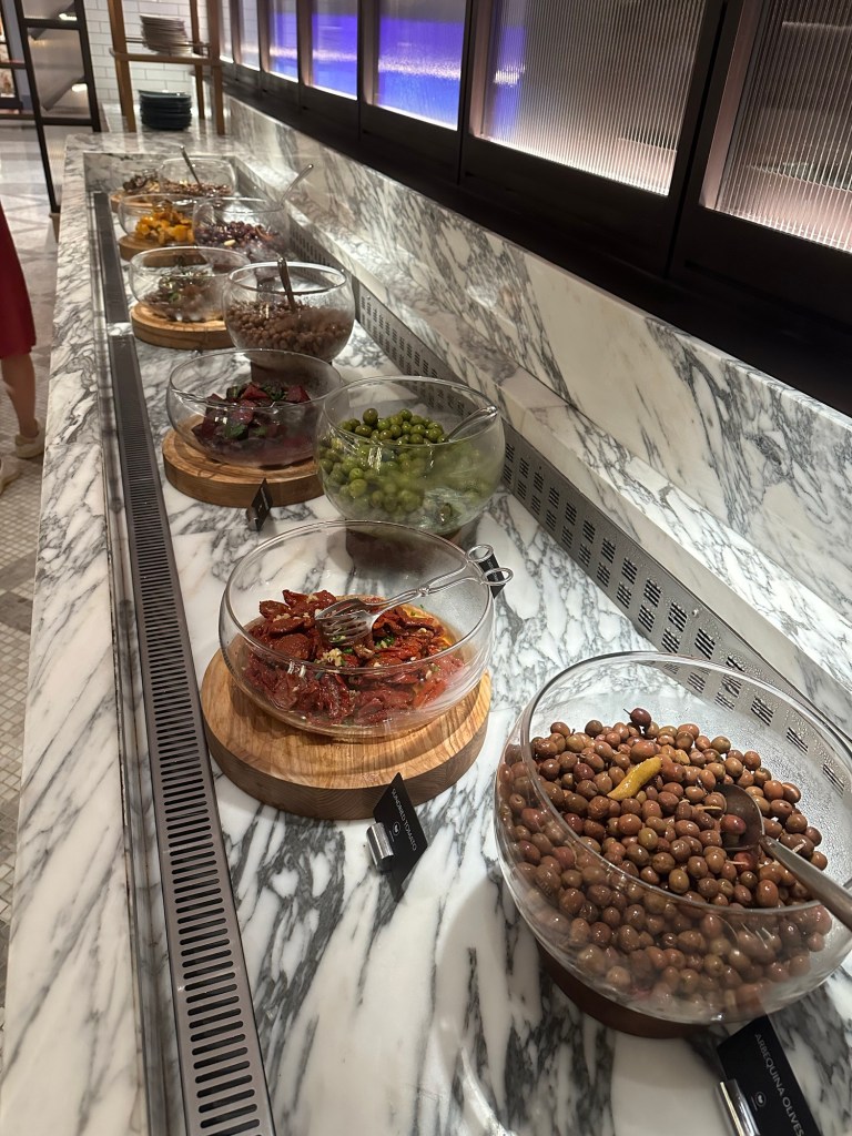 El premio se lo lleva Gastronomy, el restaurante-base del hotel donde se ofrecen a diario los desayunos y, a partir de las 6 pm, las cenas. Una media de 2200 pax por día, arriba o abajo, con un equipo de más de 250 personas entre sala y cocina. A cargo, el sheriff, Ruben que me explica desde como se organizan el día a día, como funcionan las estaciones de cocina, la jerarquía en el equipo, los controles de previsión y coste en comida… una animalada de operación desde dentro, o para personas del gremio, pero que desde fuera sólo se resume en servicio y excelencia.