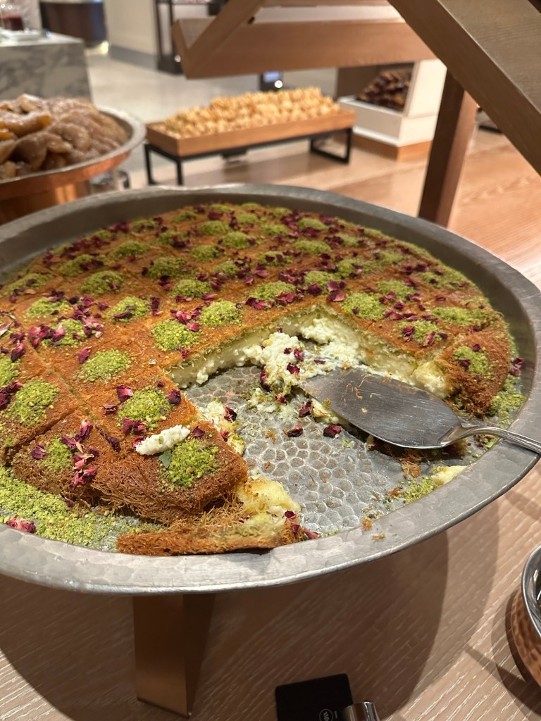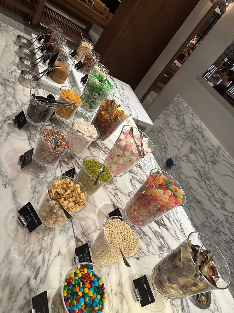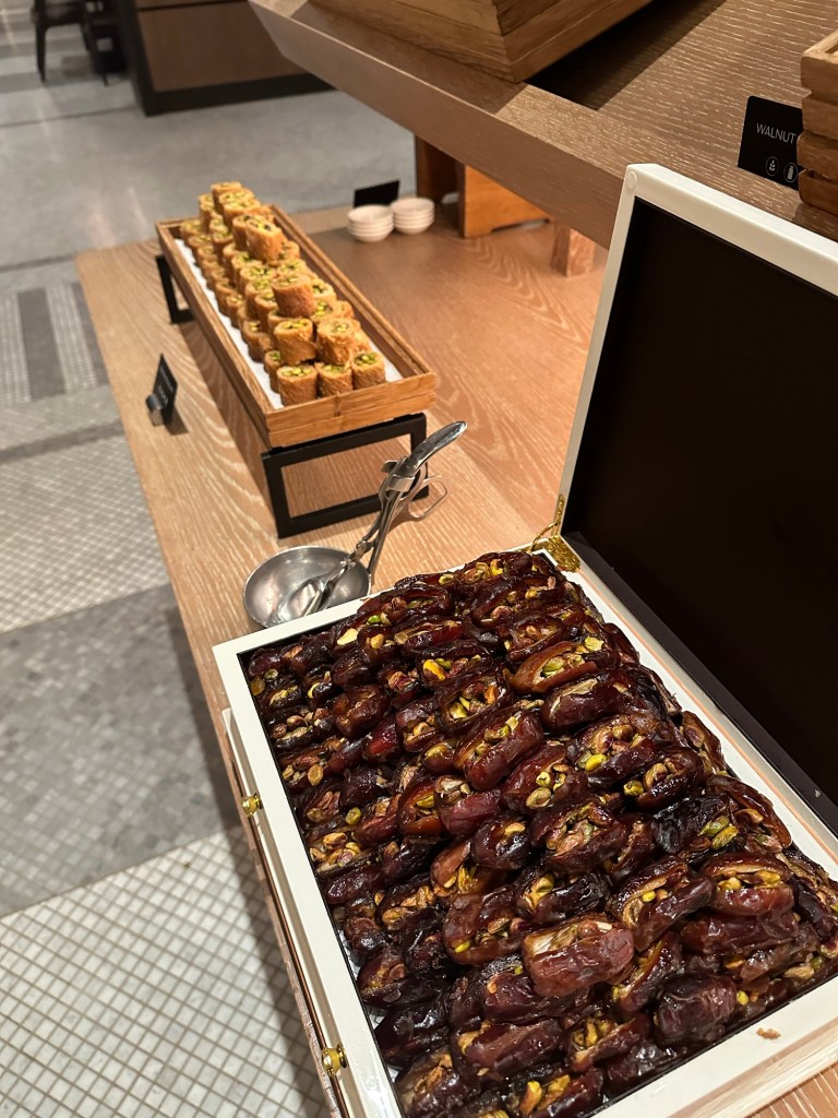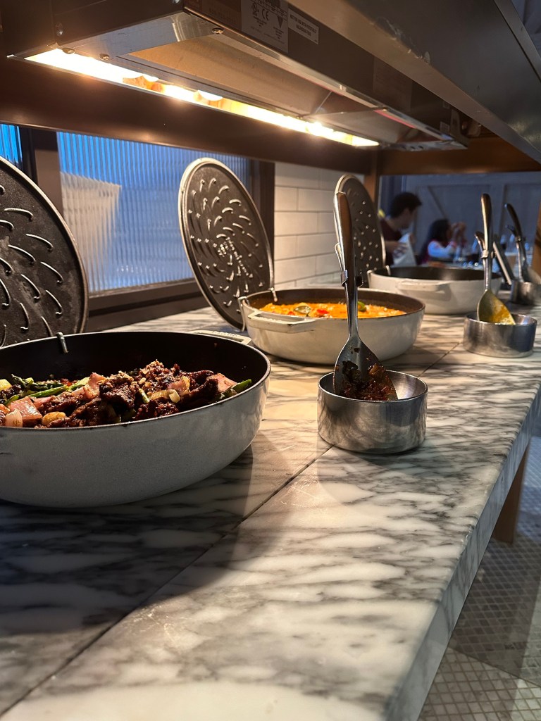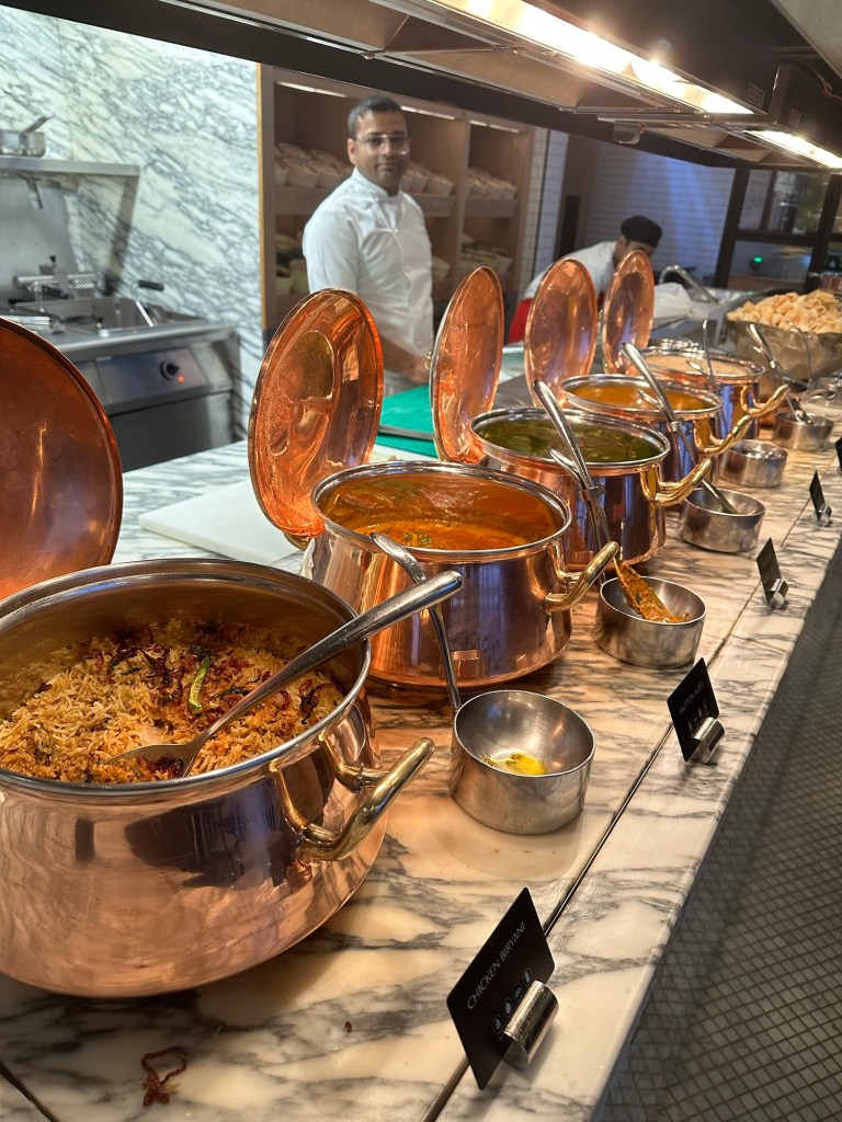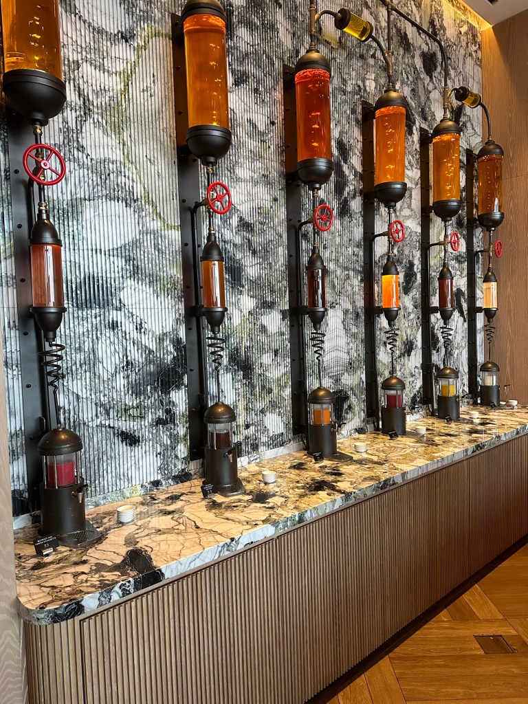 El premio se lo lleva Gastronomy, el restaurante-base del hotel donde se ofrecen a diario los desayunos y, a partir de las 6 pm, las cenas. Una media de 2200 pax por día, arriba o abajo, con un equipo de más de 250 personas entre sala y cocina. A cargo, el sheriff, Ruben que me explica desde como se organizan el día a día, como funcionan las estaciones de cocina, la jerarquía en el equipo, los controles de previsión y coste en comida… una animalada de operación desde dentro, o para personas del gremio, pero que desde fuera sólo se resume en servicio y excelencia.