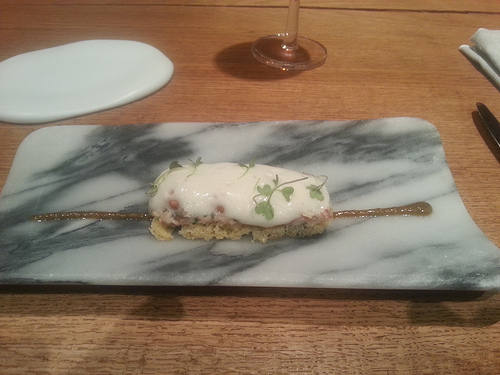 Nos decantamos, como no, por el menú degustación, y como estábamos en buenísimas manos nos dejamos llevar también por los vinos por lo que elegimos que nos maridasen el menú (gran trabajo de su mujer y resto del equipo en sala). Os dejo las fotos del menú degustación.